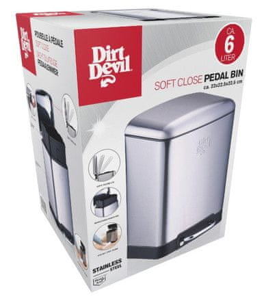 spremnika lakim. Unutarnju košaru možete jednostavno ukloniti, baciti otpad i zatim je jednostavno vratiti. Zahvaljujući izdržljivoj konstrukciji od nehrđajućeg čelika, kanta za smeće Dirt Devil s pedalom ne samo da podnosi svakodnevnu upotrebu, već se i lako čisti i održava.