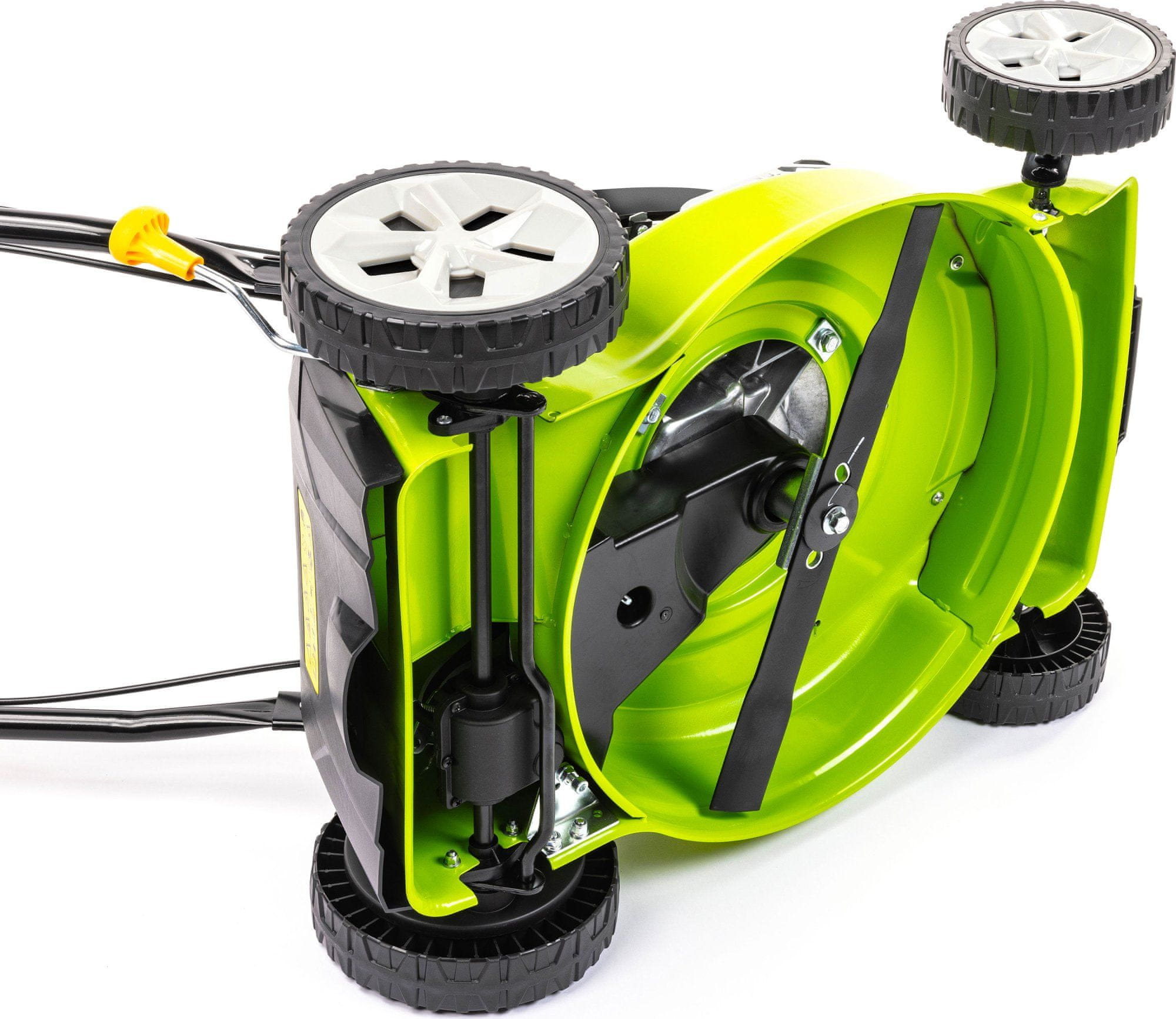 Širina košnje od 420 mm u kombinaciji s centralnim podešavanjem visine u 8 položaja omogućuje precizno uređivanje travnjaka u rasponu od 20 do 75 mm. Kotači s kugličnim ležajevima osiguravaju glatku vožnju i manji otpor pri manevriranju među preprekama u vrtu.