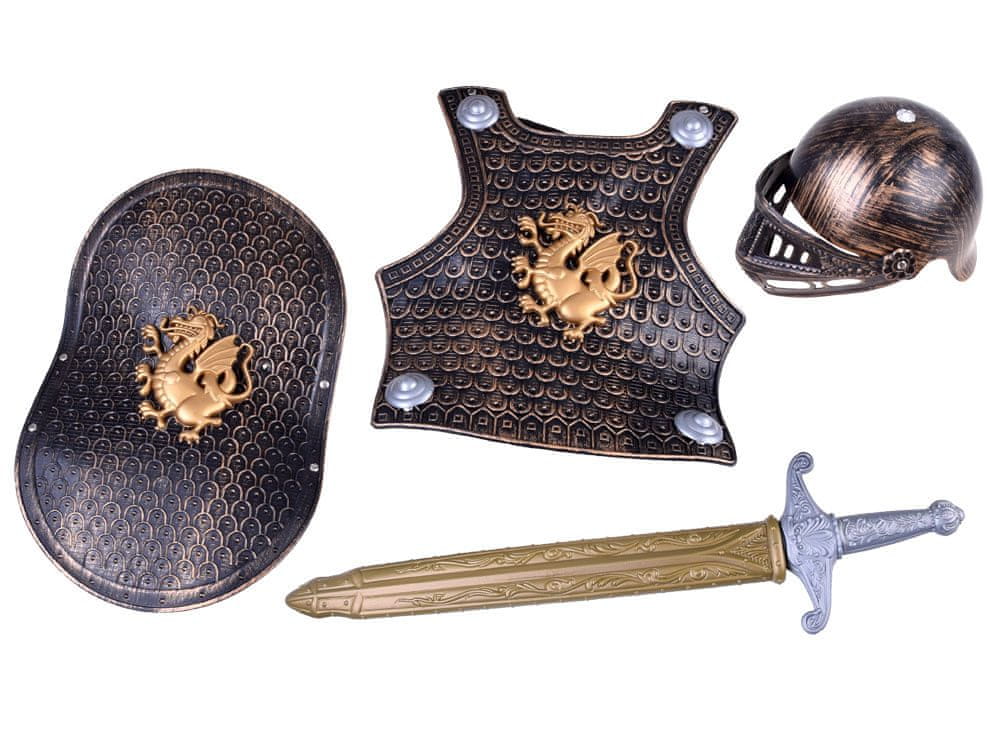 Senzacionalni novi set za mladog viteza, koji je savršen za igru i za maskenbal.Gotovo svaki dječak voli se igrati vitezova, ratnika, vojnika itd.Imam mogućnost vam .Realističan set razveselit će svakog viteza i idealan je za igru i maskenbal.