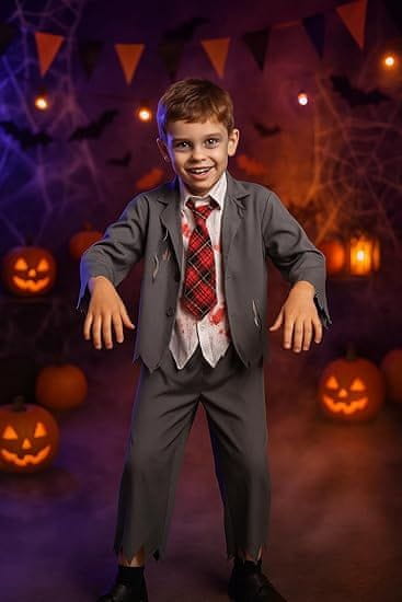 - Vizualni dojam: Kombinacija klasičnih zombie motiva s elementima elegantne garderobe osigurava da dijete izgleda posebno na svakoj zabavi pod maskama.