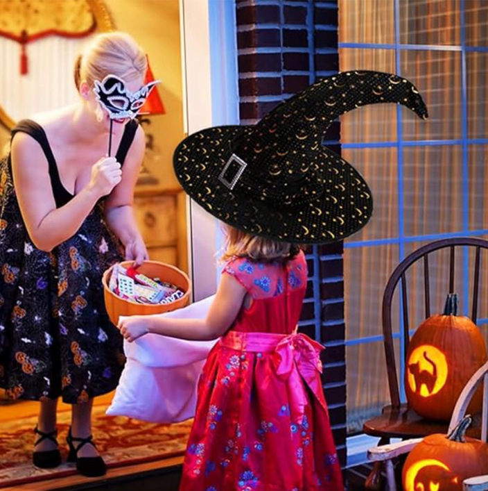 Dodajte stil i magiju svom kostimu za Noć vještica s crnim šeširom vještice sa zlatnim ukrasima. Naručite sada i pripremite se za jedinstveno iskustvo tijekom svake tematske zabave!