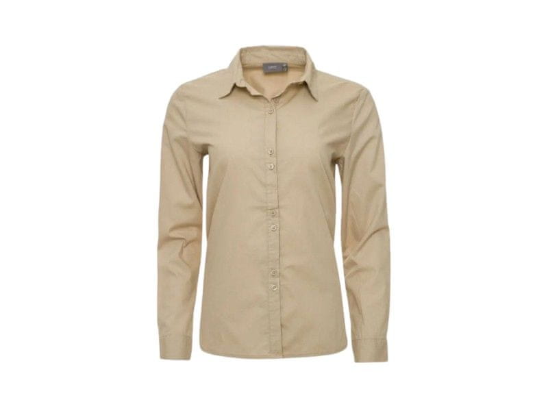 Ženska košulja dugih rukava, elastična, plava, veličina L. Elegantna i udobna, izrađena od visokokvalitetnog pamuka. Klasičan kroj s modernim detaljima poput neobičnog kopčanja i našivenih džepova. Savršena za posao i svakodnevne kombinacije.
