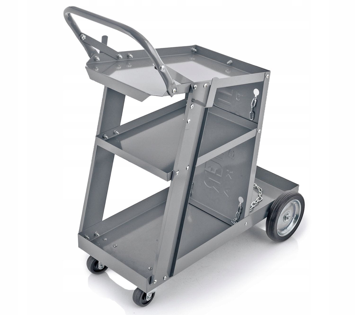 Gornja polica za aparat za zavarivanje, druge dvije s velikim kapacitetom za pribor. Na stražnjem dijelu kolica nalazi se polica za boce zajedno s dva lanca za stabilizaciju