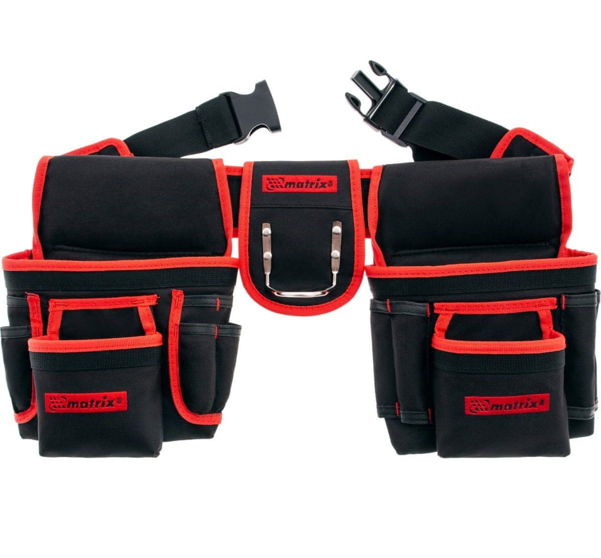 Dvostruka torba za pojas namijenjena je za spremanje i transport alata. Na remenu su dvije torbice sa džepovima, u sredini je držač za čekić. To osigurava jednostavan pristup svim potrebnim uređajima u pravo vrijeme. Vrlo koristan u uvjetima kada alat uvijek mora biti pri ruci, primjerice tijekom montažnih radova. Torba je izrađena od sintetičkog materijala i sadrži 20 džepova različitih veličina, što omogućuje spremanje velikog broja alata u nju. Pojas torbe sigurno se pričvršćuje plastičnom kopčom.