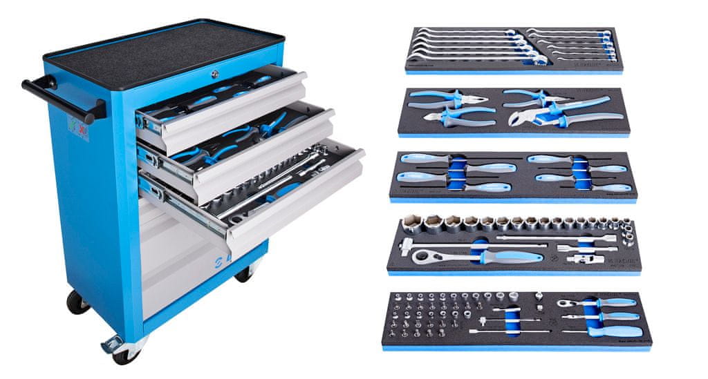 Komplet alata 940ECO s kolicima kombinira mobilnost, vidljivost i širok raspon bitnih alata za mehaničke, održavajuće i montažne radove. Idealno rješenje za mehaničare, tehničare i inženjere u dinamičnim radnim okruženjima.