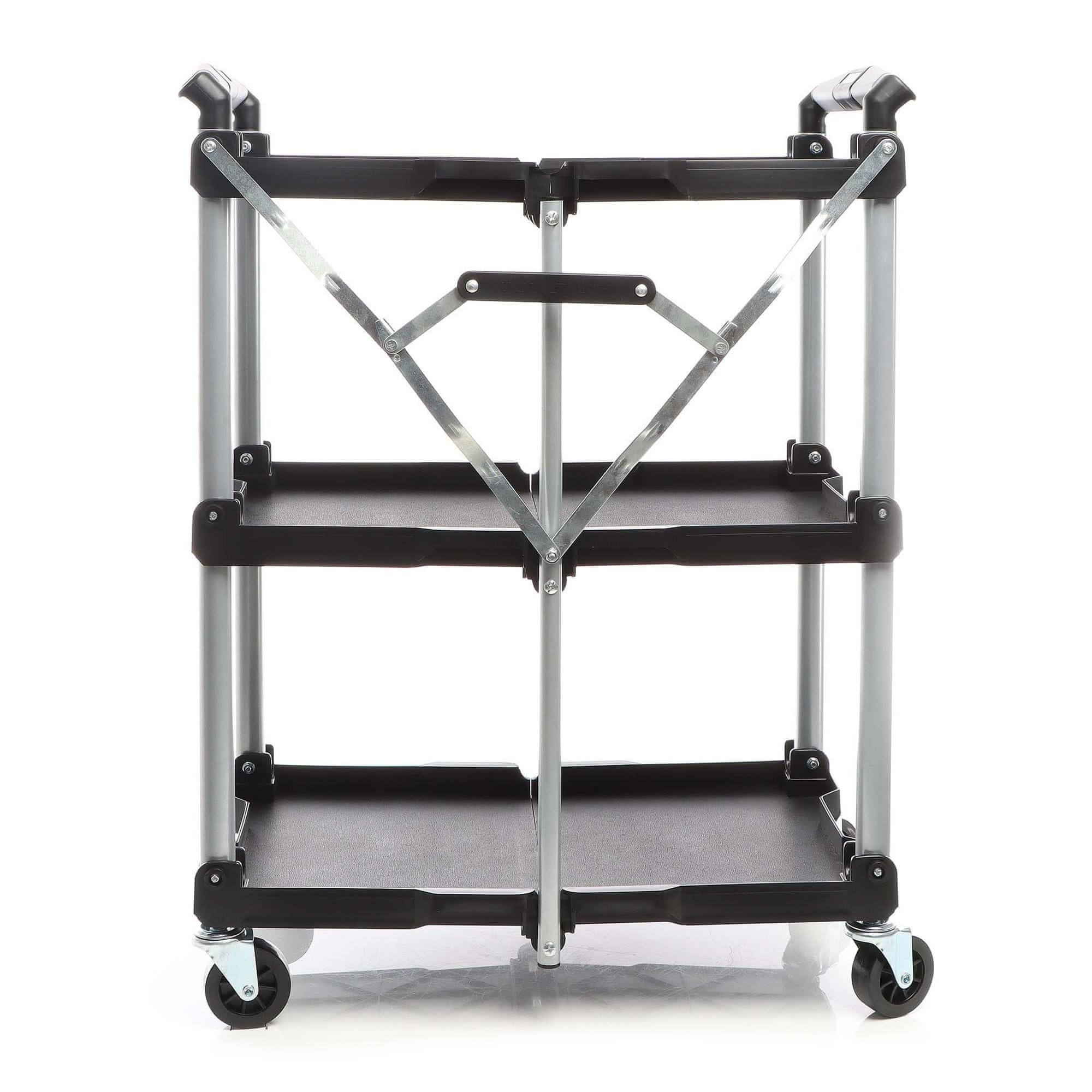 Nakon korištenja kolica možete jednostavno sklopiti i tako uštedjeti prostor. Kada je sklopljena, ima kompaktne dimenzije od 38 × 20 × 106 cm i lako se sprema i transportira. Bilo u kuhinji kao praktična kuhinjska kolica, u radionici za spremanje alata ili u ugostiteljstvu kao kolica za posluživanje – ova sklopiva kolica svestrani su pomoćnik za široku paletu namjena.