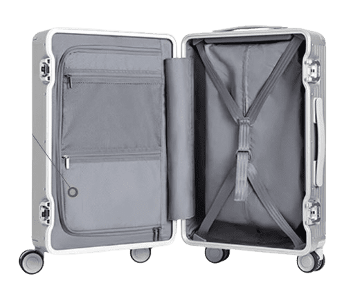 Xiaomi putni kovčeg s aluminijskim okvirom, dimenzija 580 × 375 × 230 mm. Tradicionalni patentni zatvarač zamijenjen je TSA bravama koje se lako pritiskaju i otvaraju, čineći vađenje predmeta brzim, učinkovitim i bez muke. Unutrašnjost torbice opremljena je džepovima u obliku slova U i trakama u obliku slova X za svestrano skladištenje. Tu je i ugrađeni vodootporni odjeljak za odvajanje mokrih predmeta i održavanje higijene.