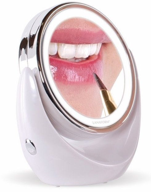 Lanaform Led Mirror X10 je kozmetičko ogledalo s svjetlom LED. LED Mirror X10 je obostrano ogledalo s 10× zoomom i svjetlom LED. Moderan oblik ogledala krasit će vaš prostor. Oblik ogledala je idealan za šminkanje i njegu obraza. Ogledalo je obostrano i okrene se za 360°, na jednoj strani je ogledalo s 10× zoomom, a na drugoj je normalno ogledalo.