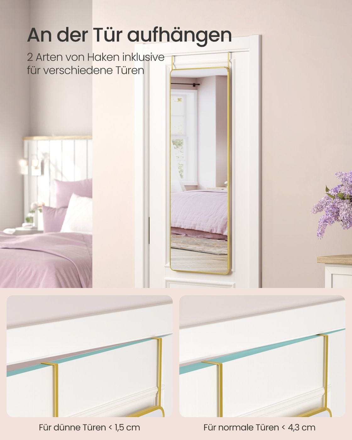 Songmics Ogledalo pune duljine 120x40 cm zlatno