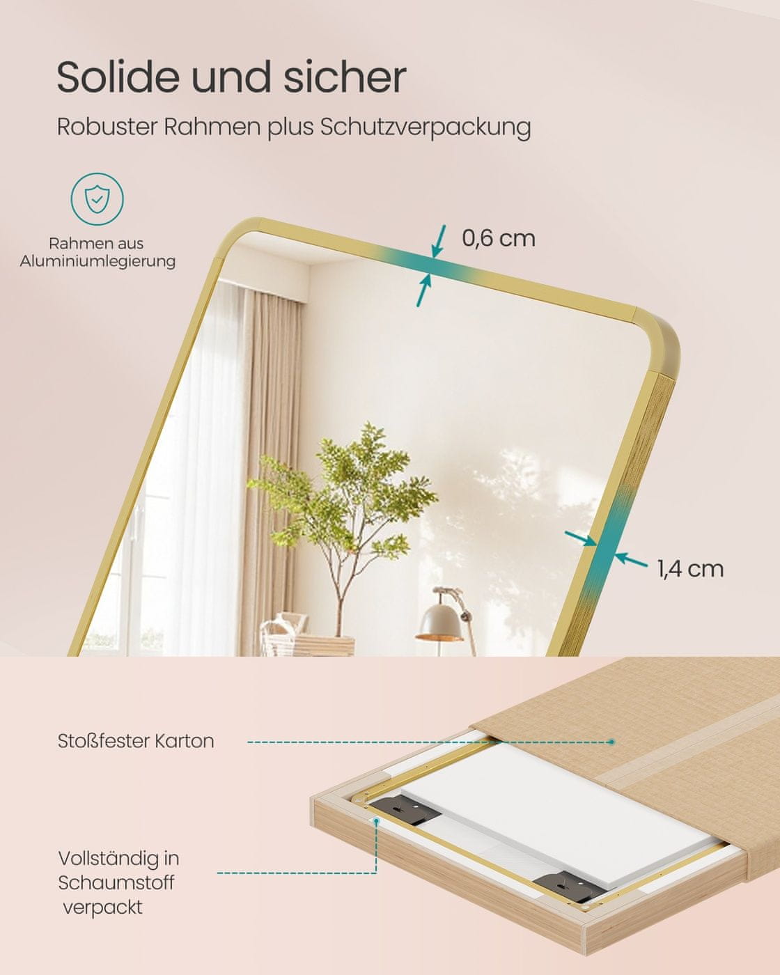 Ovaj pravokutni ogledalo pune dužine dizajnirano je za pružanje jasnog i širokog odraza što ga čini idealnim za spavaće sobe dnevne boravke ili garderobe. Njegov moderan stil i svestrane mogućnosti montaže omogućuju vam da ga objesite na zid ili preko vrata savršeno se prilagođavajući vašem prostoru. Čvrsta konstrukcija osigurava dugotrajnost i profinjen izgled za svakodnevnu upotrebu.