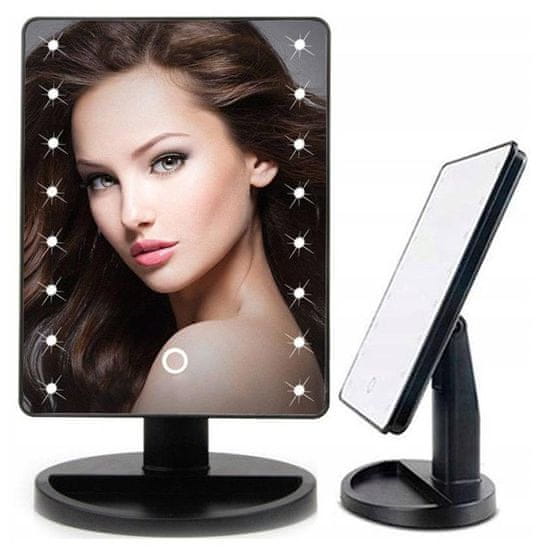 Nudimo vam 16LED osvijetljeno kozmetičko ogledalo u elegantnoj crnoj boji koje će pružiti savršeno osvjetljenje tijekom vaše dnevne ili noćne kozmetičke rutine.