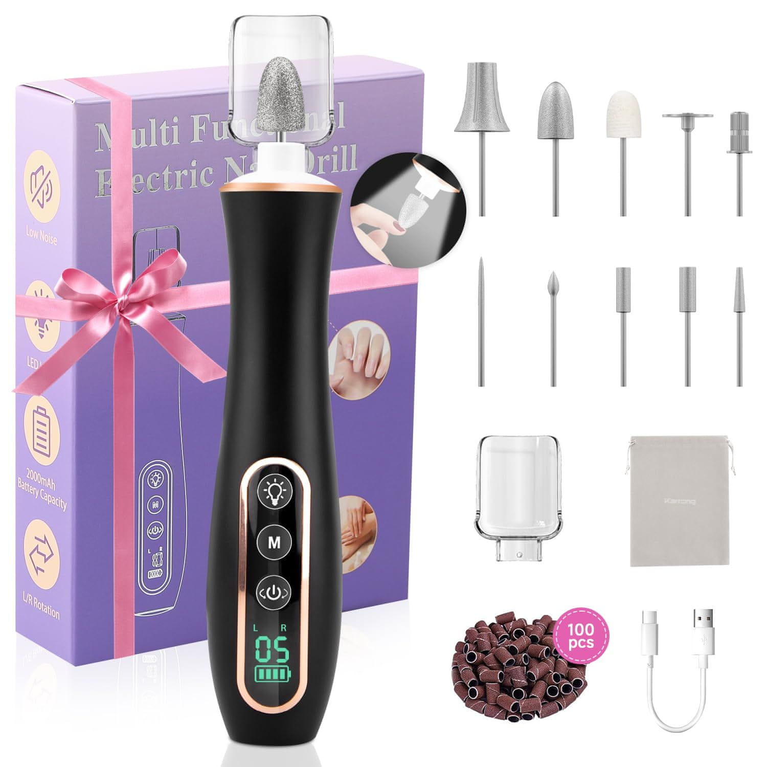 slomart Karrong Manikura Set Električni Bežični, Električna Turpija za Nokte s 10 Nastavcima, Električni Frezer za Nokte Akumulatorski, Set za Njegu Noktiju s 10 Brzina LED Svjetlo za Gel Nokte Akrilne Nokte