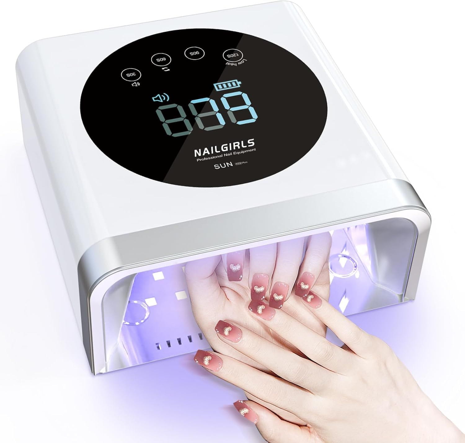 slomart Nailgirls UV lampa za gel nokte, 150W UV lampa za nokte, punjiva sušilica za nokte, 30/60/90/120s timer, LCD zaslon, automatski senzor, odvojiva donja ploča, za gel nokte na prstima ruku i nogu