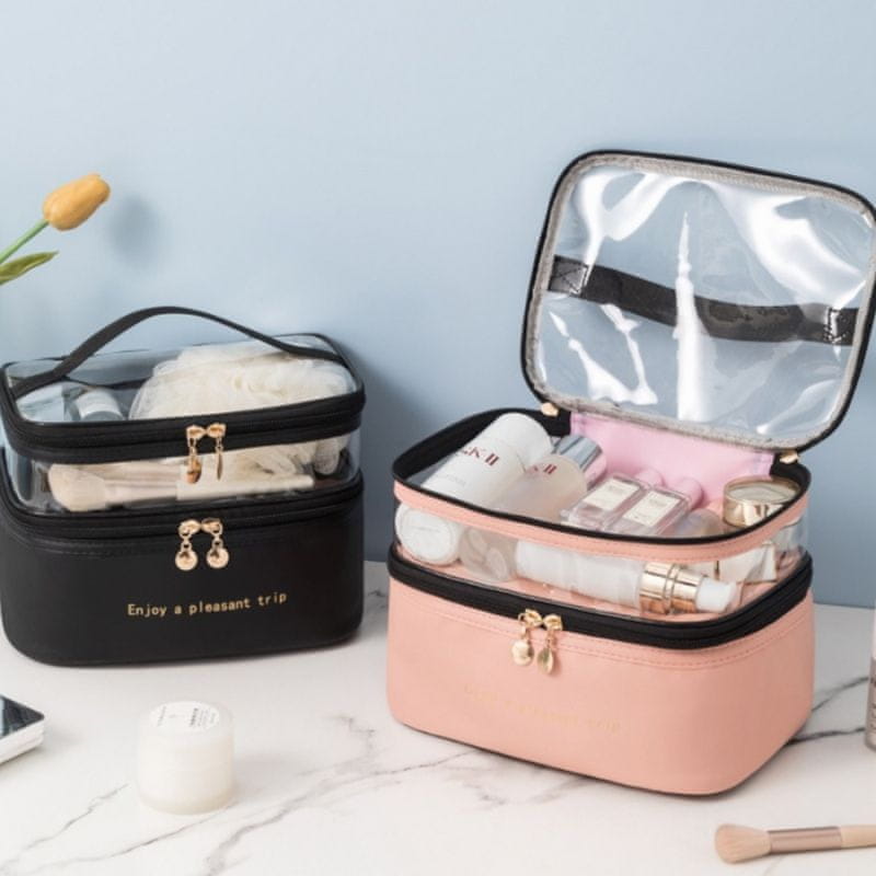 Kozmetička torbica – 2 pretinca, pogodna za putovanja, omogućava preglednu organizaciju kozmetike, higijenskih potrepština i pribora.