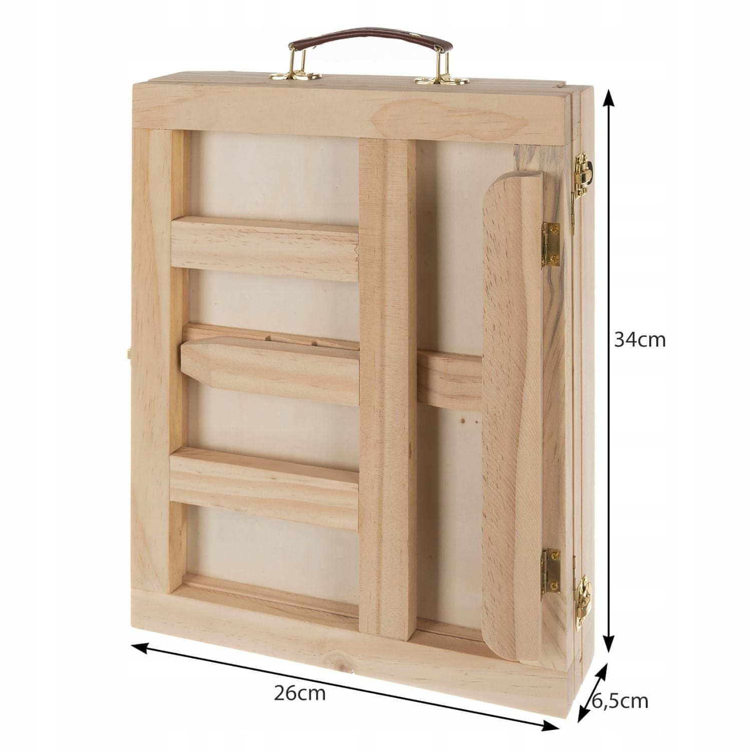 Praktični kovček omogoča priročno shranjevanje barv, čopičev in lopatic ter jim zagotavlja zaščito. Poleg tega zaradi ročaja omogoča enostaven transport , ne glede na kraj uporabe. Zložljivo stojalo zagotavlja udobje med slikanjem in vam omogoča udobno ustvarjanje del v različnih formatih.