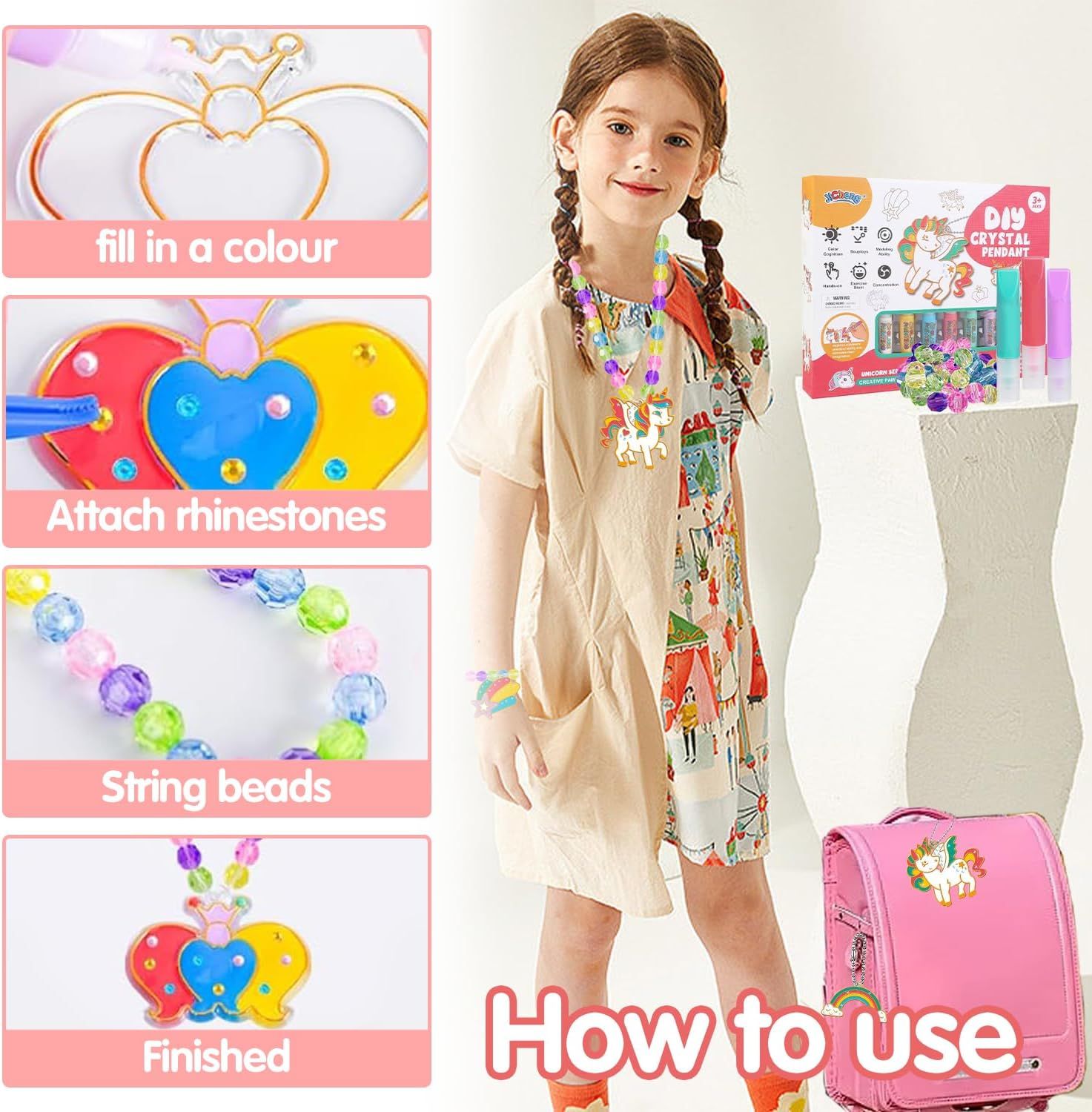 Netscroll Kreativni set za djecu, DIY igračke s motivima samoroga , izrada obojanih obeskova s dijamantima, potiče maštu i motoriku, ArtCraft