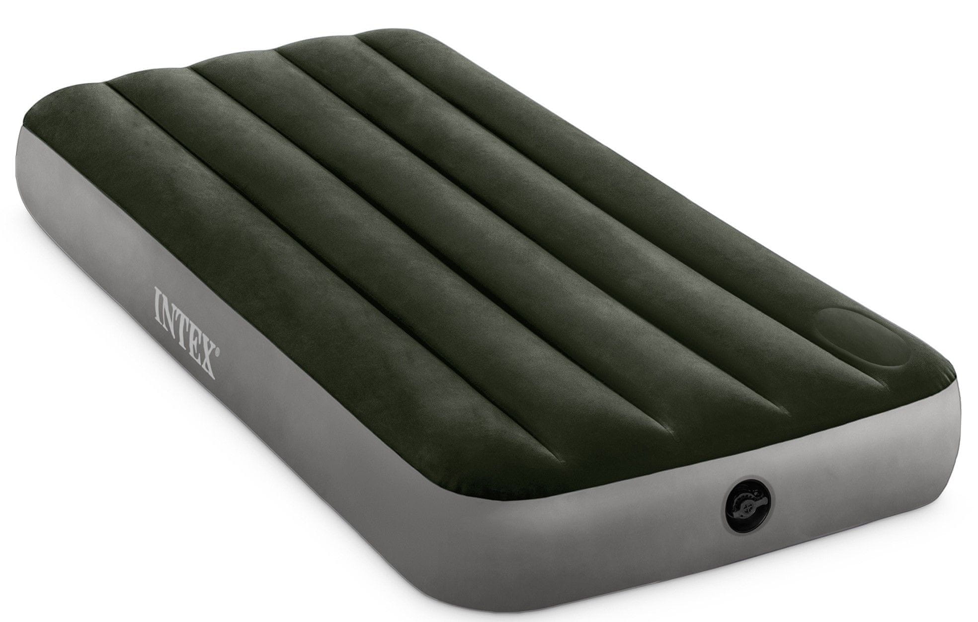 Krevet na napuhavanje Intex Dura-Beam Cot Downy dimenzija 76 × 191 × 25 cm ima maksimalnu nosivost od 136 kg. Vrijeme napuhivanja je 2,5 minuta