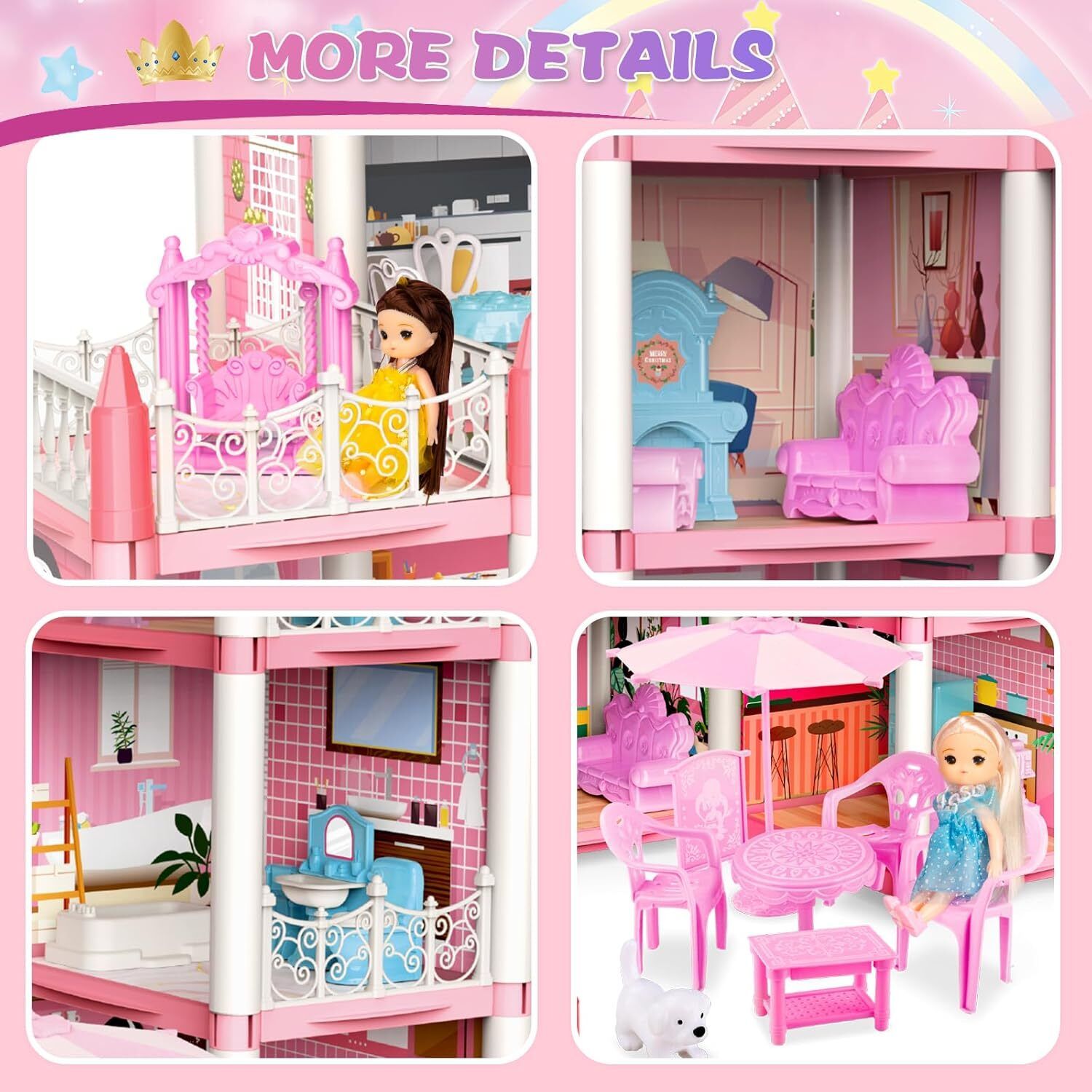 JOJOY® Velika kućica za lutke s LED rasvjetom, namještajem i 11 soba za djevojčice | VILLADREAM
