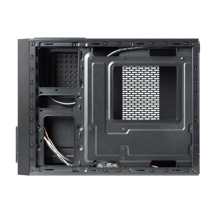 Potpuno crno kućište s dodatnim stalkom. Ugrađeni tihi 250W napajanje. Prostor za proširive kartice. Boja: crna. Dimenzije: 410mm x 105mm x 300mm. Težina: 3,5kg.
