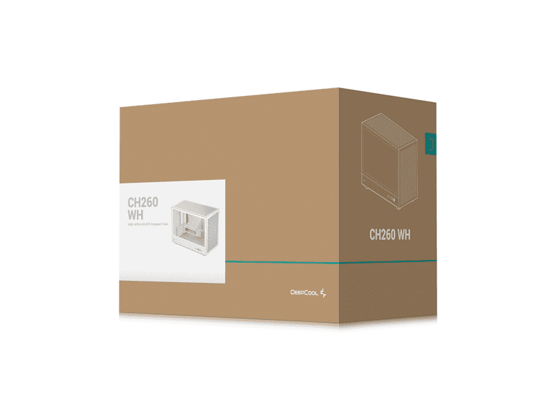CH260 je prošireno Micro-ATX kućište (438 × 225 × 312,5 mm) s kaljenim staklenim stranicama i izvrsnom ventilacijom (perforirana mreža). Podržava grafičke procesore do 413 mm i 360 mm AIO na vrhu. Kućište je kompatibilno s matičnim pločama koje se montiraju straga i ima jednostavan pristup I/O priključcima (2× USB 3.0, 1× USB-C).