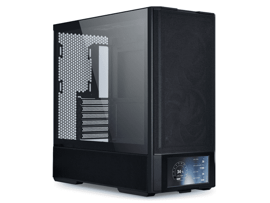 Ladica matične ploče dizajnirana je kako bi omogućila izvrstan protok zraka i učinkovito hlađenje komponenti. Napajanje se nalazi na prednjoj strani kućišta i ima bočne utičnice, što omogućuje brzo i jednostavno spajanje kabela. Priloženi produžetak omogućuje praktično usmjeravanje kabela za napajanje. Posebnost kućišta je LCD zaslon na prednjoj strani, rezolucije 720 × 1600 px i svjetline od 500 nita. Zaslon ima brzinu osvježavanja od 60 Hz i može prikazivati podatke sustava, grafiku ili djelovati kao sekundarni zaslon računala, što omogućuje vrhunsku personalizaciju.