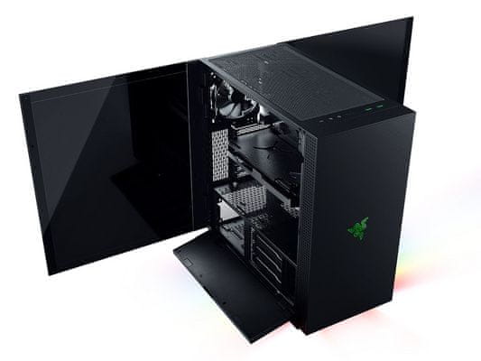 Razer Tomahawk ATX je kućište napravljeno za izradu moćnog računala. Nudi jednostavno kabliranje, podršku grafičke kartice u punoj veličini i vodeno hlađenje. Osim izvrsnih performansi, ima i staklena vrata s obje strane, Razer Chroma RGB osvjetljenje i prikladne ulaze na prednjoj ploči.