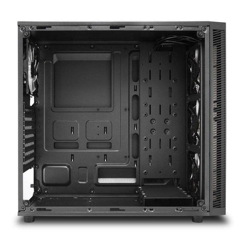 Odlično kućište TG4 RGB poznatog proizvođača SHARKOON je napravljeno za ljubitelje igara. Možete instalirati Mini-ITX, Micro-ATX, ATX i E-ATX matične ploče. Nema ograničenja u odabiru grafičke kartice jer prihvaća najdulje kartice do dužine od 375 milimetara i hladnjaka visokih procesora. Zbog prednje i bočne ploče od kaljenog stakla kućište izgleda vrlo moderno, a tome pridonose i 4 RGB ventilatora (3 sprijeda, 1 straga). Možete podesiti boju ventilatora kako želite, a možete i isključiti LED svjetla. Možete odabrati između 14 različitih efekata boja.