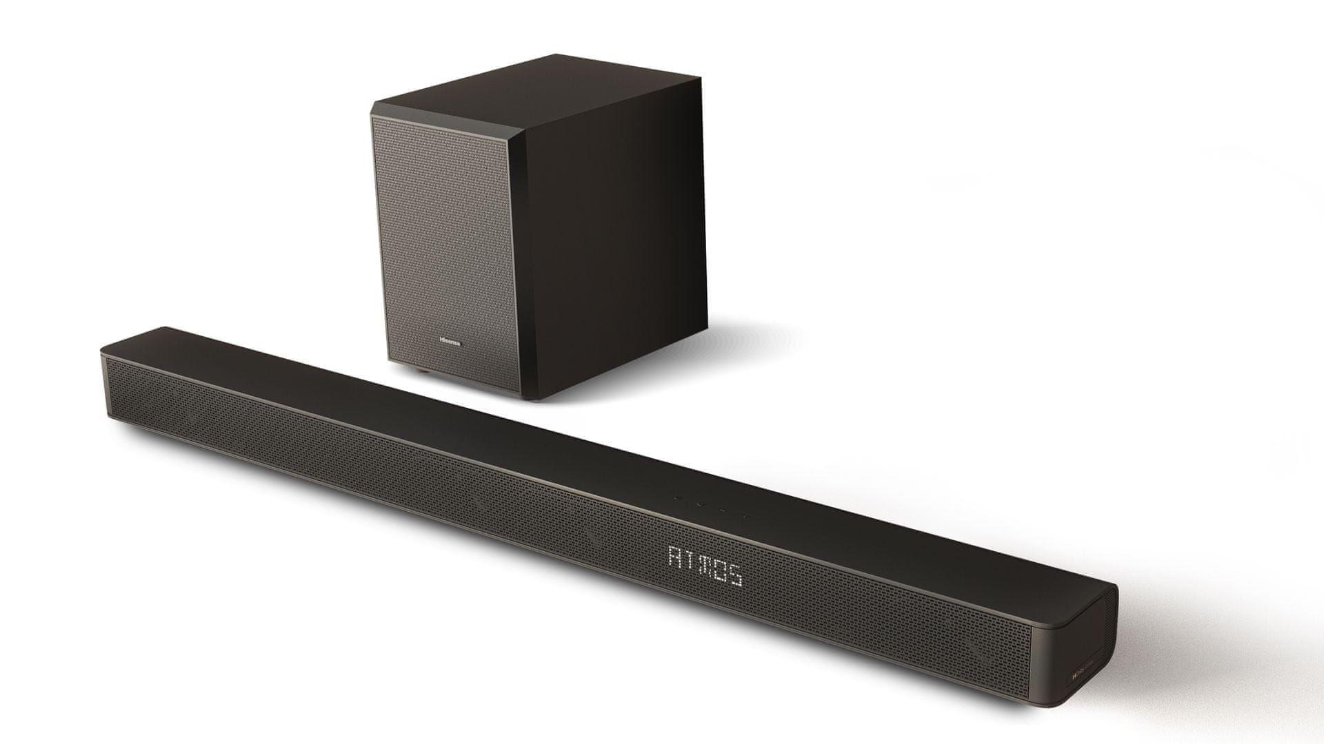 | Dimenzije i masa | Dimenzije paketa: 99 × 45 × 23 cm Masa: Soundbar – 2.54 kg / Subwoofer 5.17 kg |