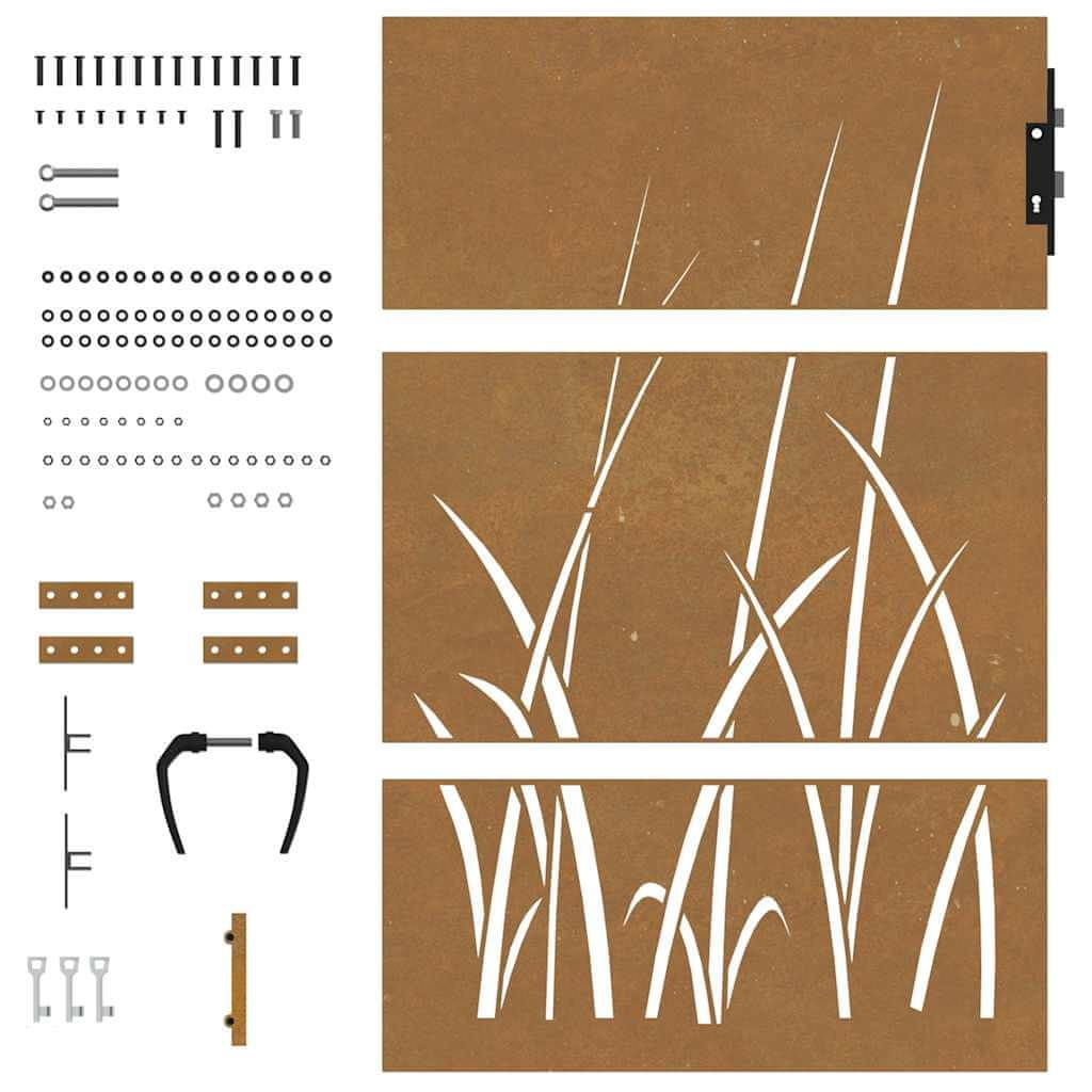 Vidaxl Vrtna vrata 85 x 125 cm od čelika COR-TEN s uzorkom trave