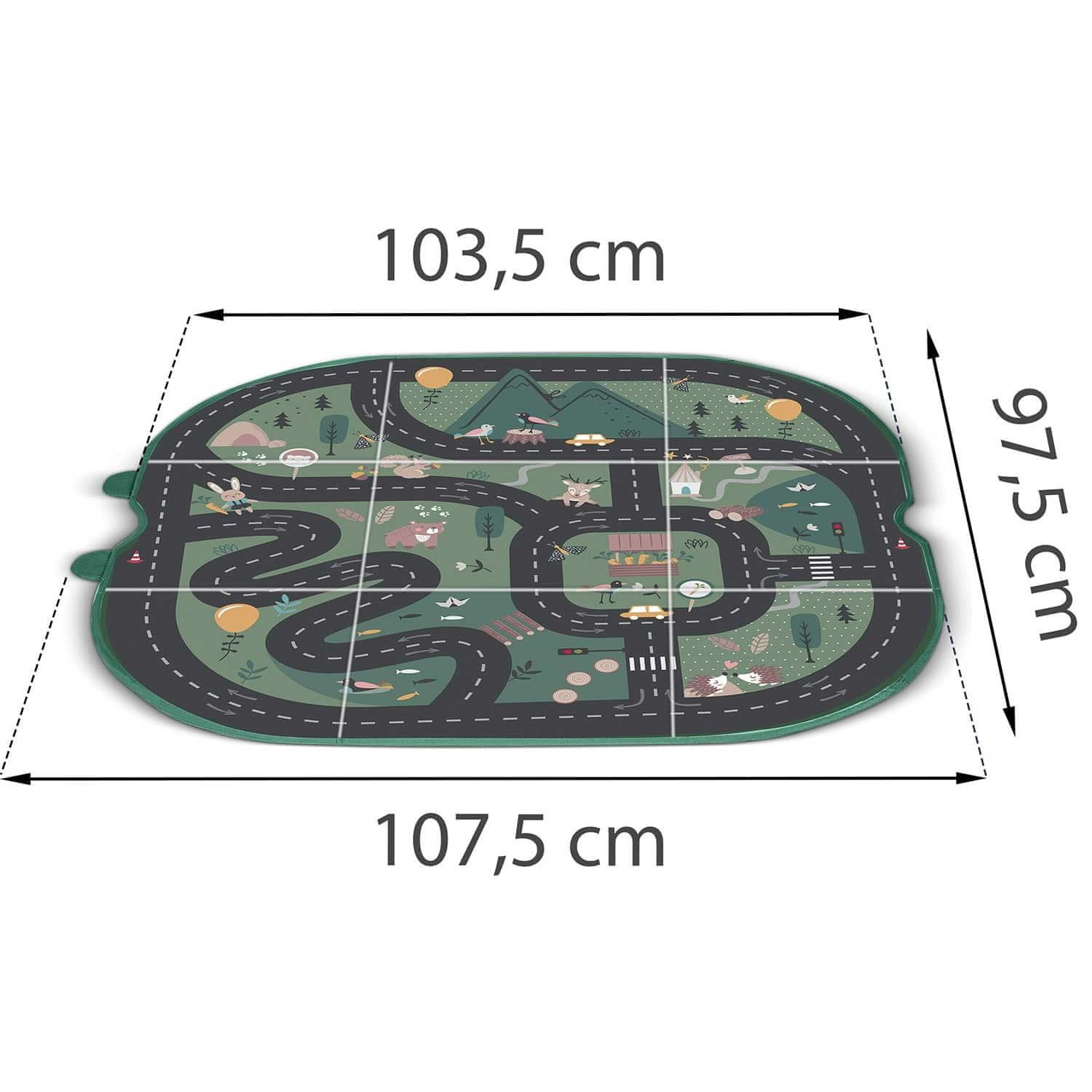 - dimenzije u otvorenoj varijanti – prostirka: 103,5 × 97,5 cm.