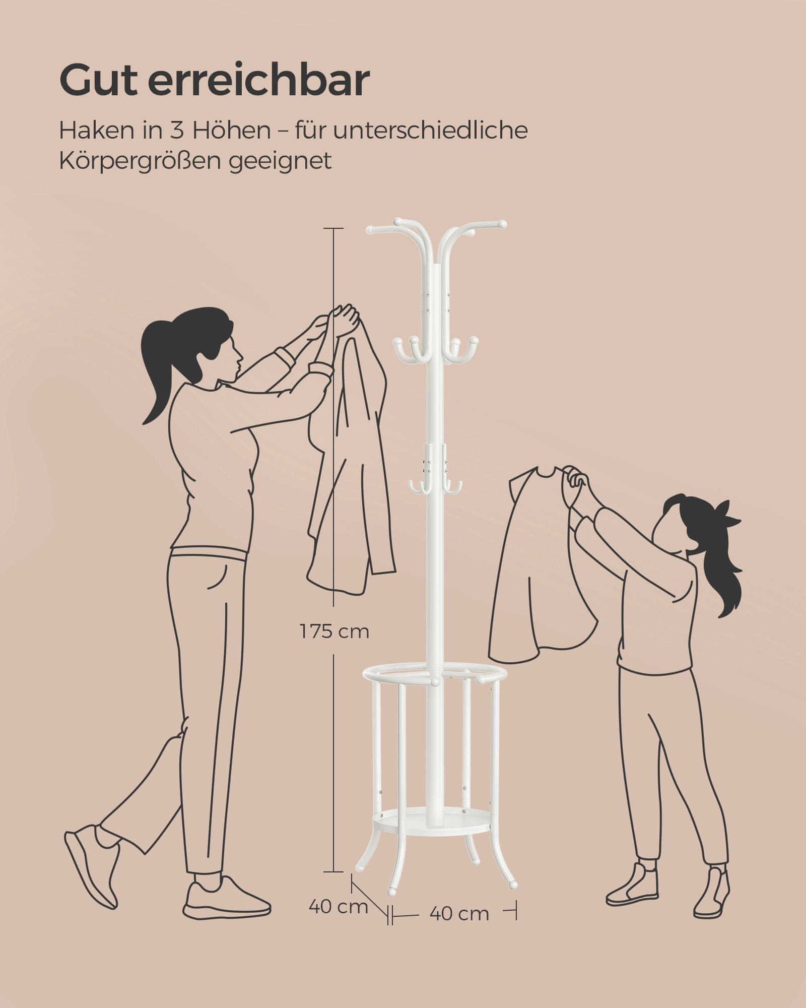 Songmics Stalak za kapute samostojeći 40x40x175 cm bijeli