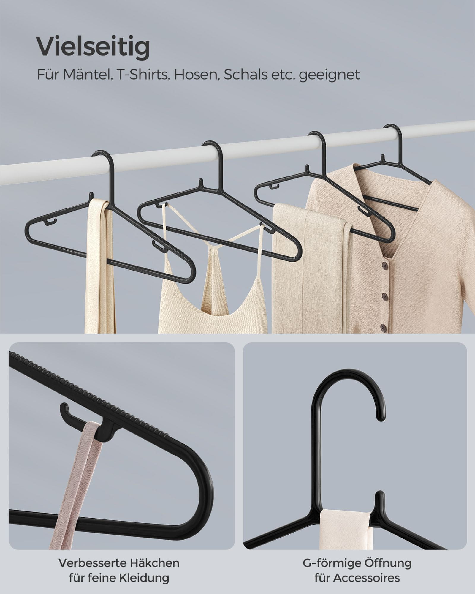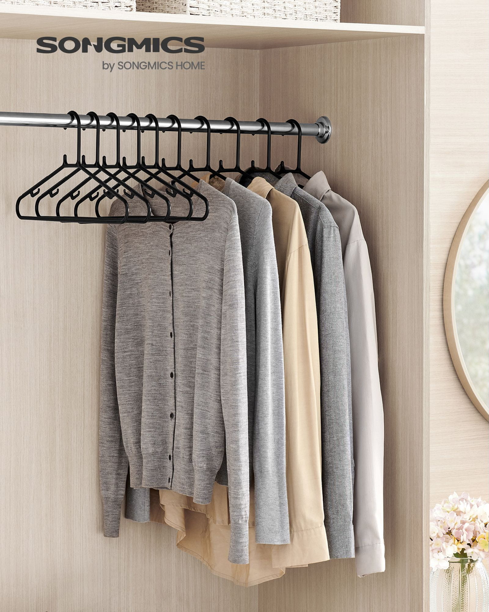 Ovi lagani plastični vješalice pomažu vam učinkovito organizirati košulje, hlače i jakne, istovremeno štedeći prostor u vašem ormaru. Idealni za održavanje vaše garderobe urednom i pristupačnom.