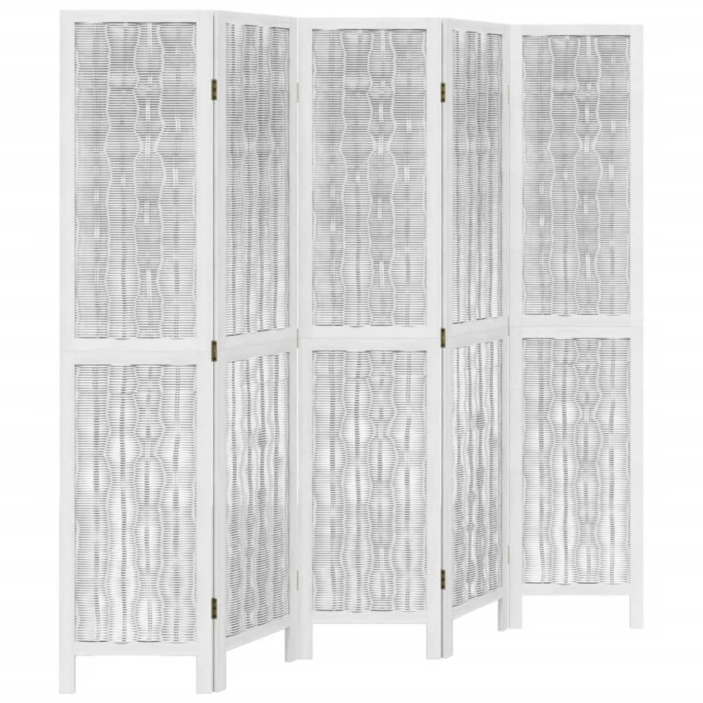 Vidaxl Sobna pregrada s 5 panela bijela od masivnog drva paulovnije