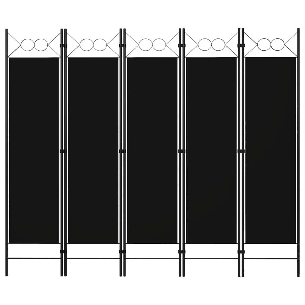 Vidaxl Sobna pregrada s 5 panela crna 200 x 180 cm