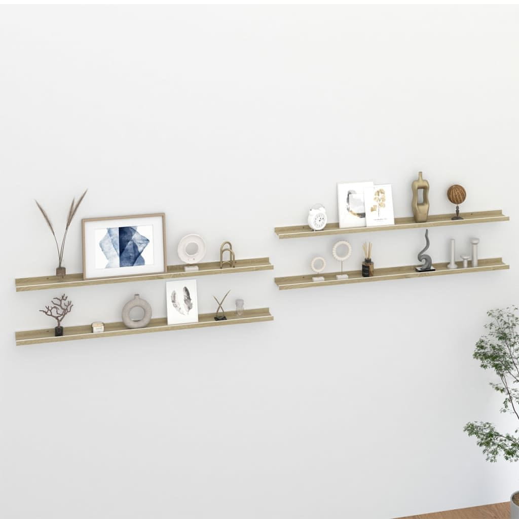 Vidaxl Zidne police 4 kom bijele i boja hrasta sonome 115 x 9 x 3 cm
