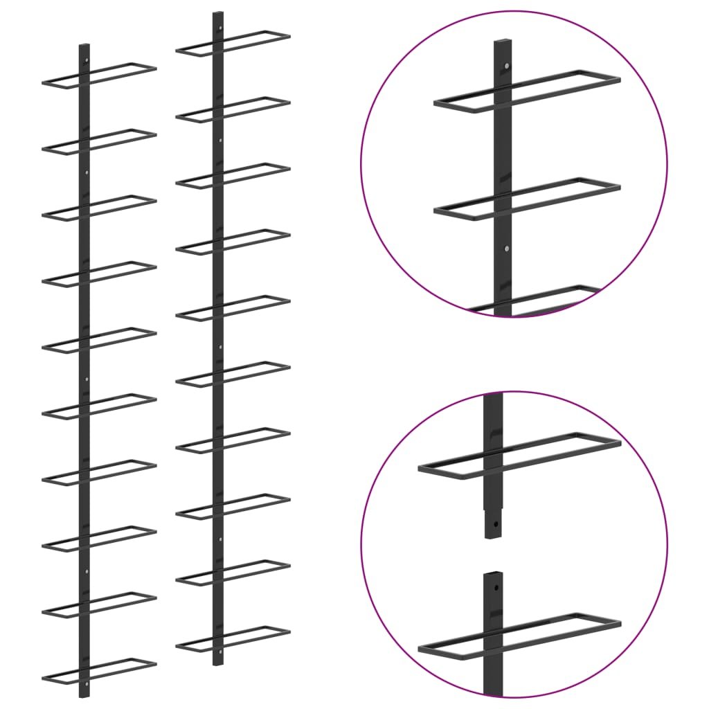 Vidaxl Zidni stalci za vino za 20 boca 2 kom crni metalni