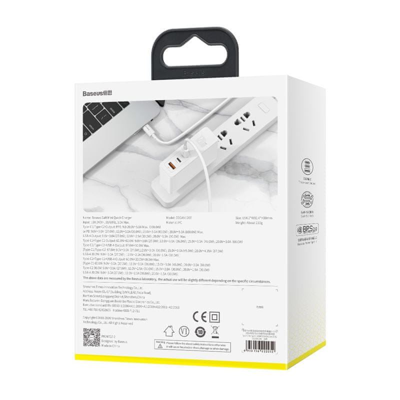 Prikladni mrežni punjač prikladan za kuću i putovanja. Baseus GaN Mini USB adapter za brzo punjenje opremljen je 1 × USB ulazom i 2 × USB-C ulazima snage do 100 W. Podržava Power Delivery i QuickCharge 3.0. Kompaktan dizajn prikladan za putovanja.