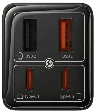 Punjač je opremljen s četiri priključka – dva USB-C i dva USB-A – što vam omogućuje istovremeno punjenje do četiri uređaja. Ova svestranost omogućuje vam da sa sobom ponesete jedan punjač za sve svoje uređaje, štedeći prostor i smanjujući potrebu za dodatnom opremom.