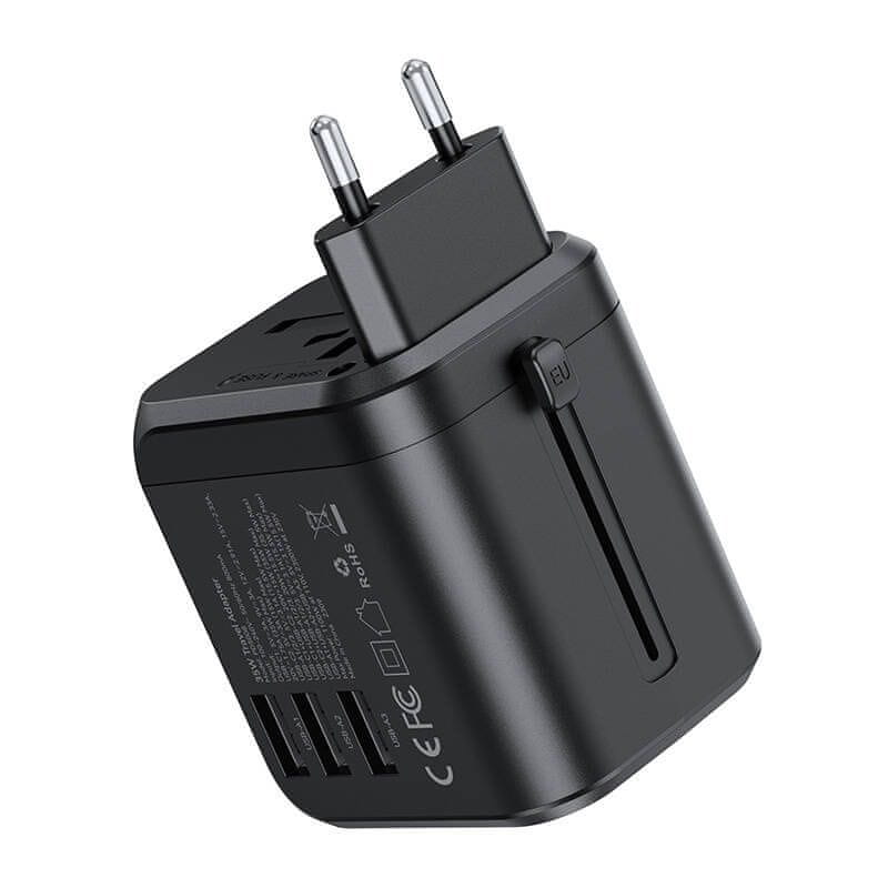 Choetech Putna punjač Choetech PD5008, 3xUSB-A, 2xUSB-C, GaN, 35W, za US/EU/UK/AU, crna