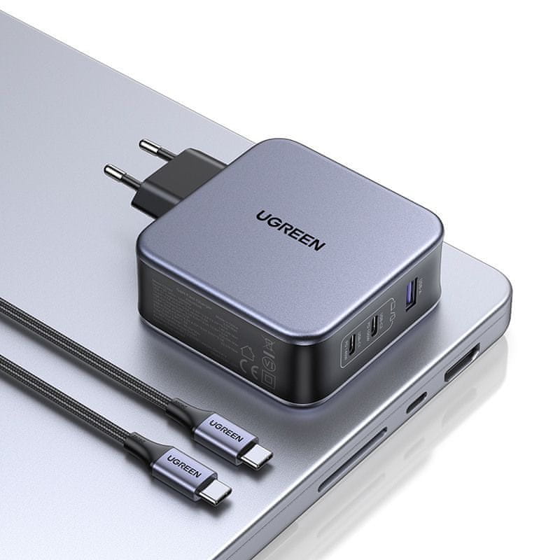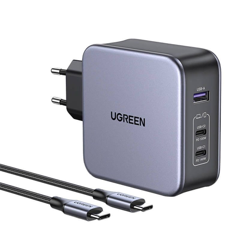 Ugreen CD289 GaN punjač 2x USB-C / USB 140W + kabel USB-C, srebro