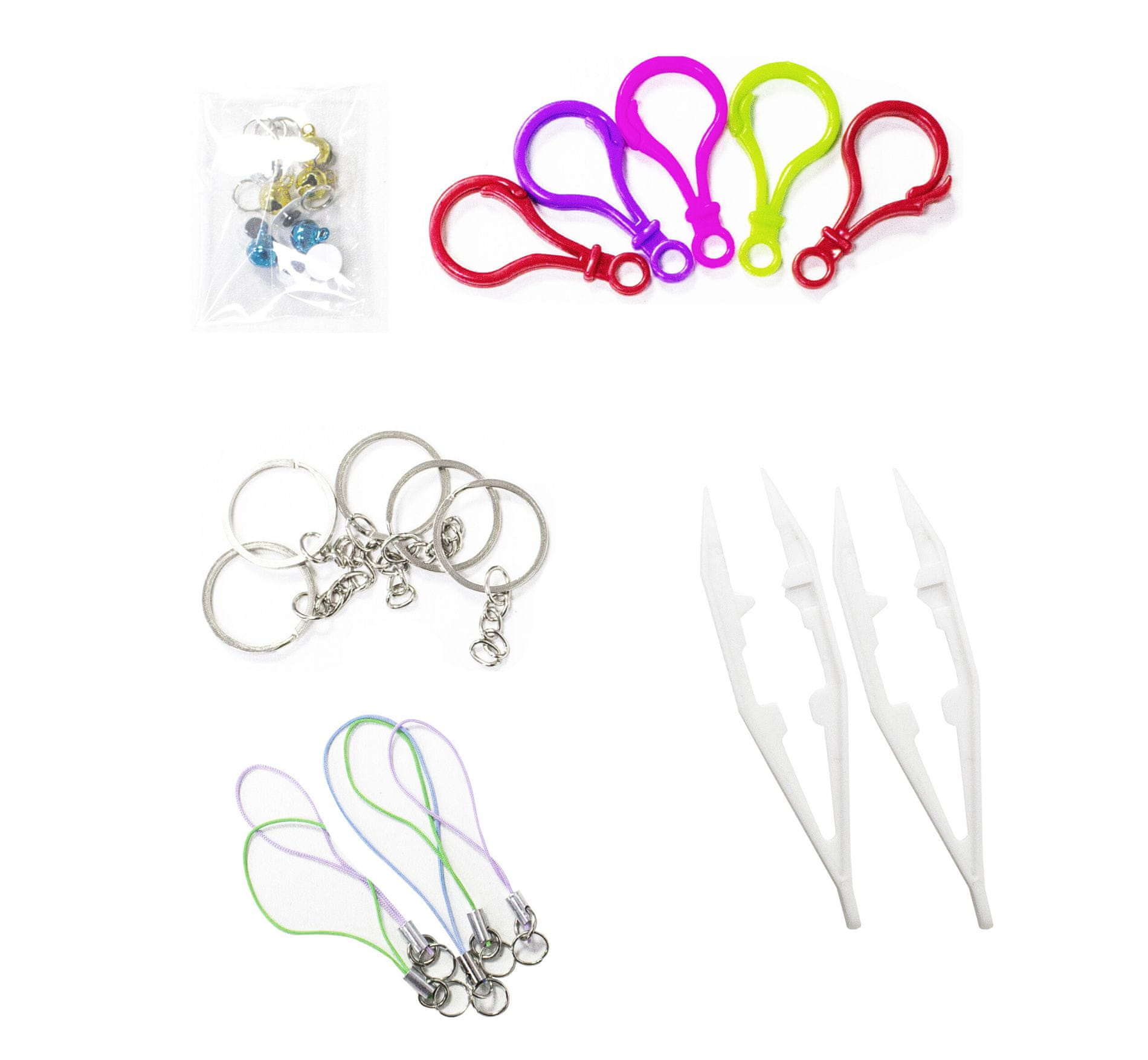 - Set sadrži – kutiju s perlicama, 2× pincetu, 27× uzorak kartica, 4× podloge, 5× papir za peglanje, 10× privjesak za ključeve, 5× zvončić, 10× prsten, 5× privjesak za mobitel i 5× pokretne plastične oči