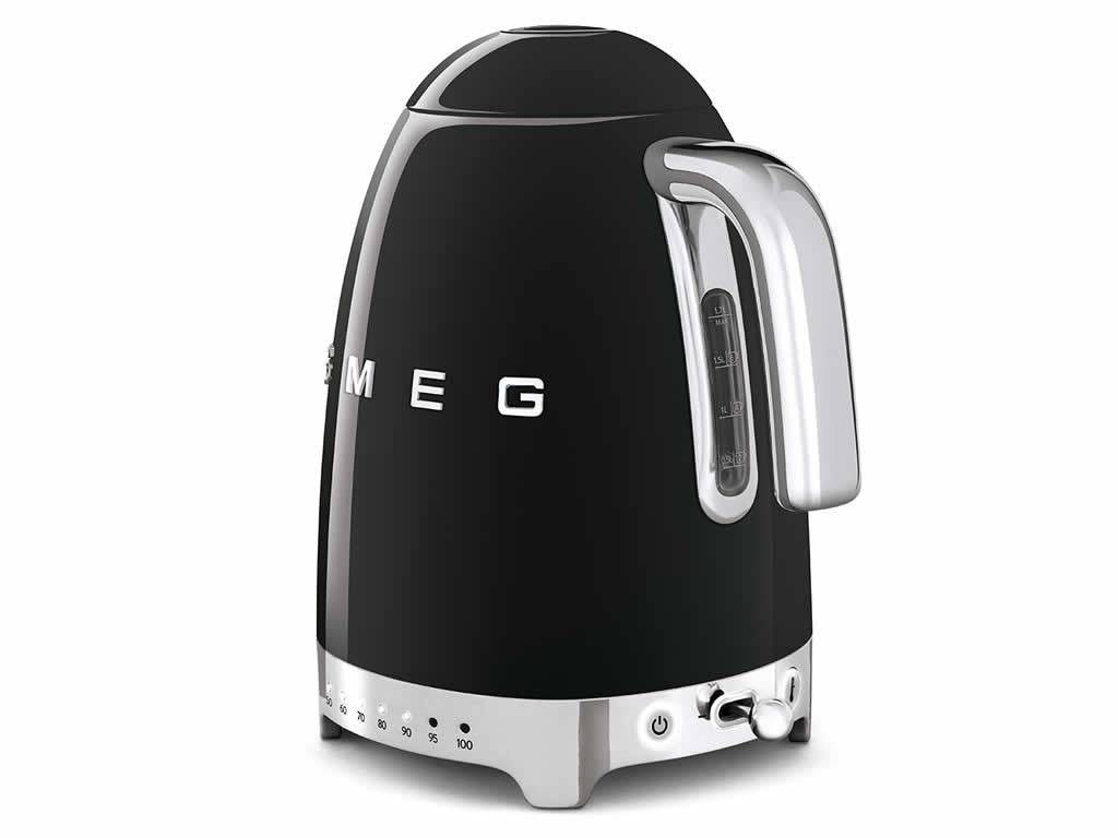 Grijač vode s kapacitetom 1,7 litara i snagu 2400 W. SMEG KLF04BLEU u retro dizajnu ima mogućnost podešavanja temperature vode od 50 do 100 °C i funkcijom Keep warm koja traje do 20 minuta. Precizno oblačenje bez puštanja pare, hladna ručka s kromiranim premazom.
