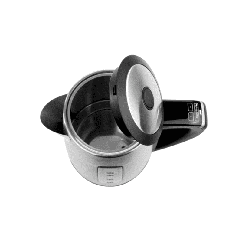 Poklopac kuhala lako se otvara pritiskom na gumb, što omogućuje brzo i sigurno punjenje. Ručka hladna na dodir osigurava da se ne zagrijava tijekom upotrebe, pružajući veću udobnost i sigurnost pri rukovanju kuhalom, čak i kada je voda vrlo vruća.