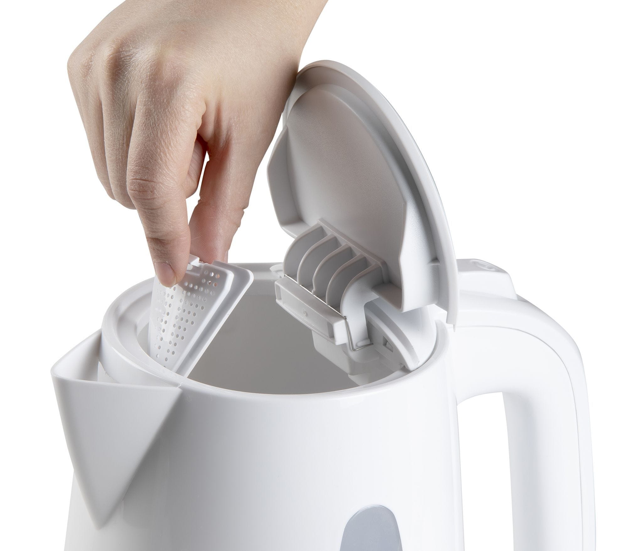 Domo kuhalo, kapaciteta 1,7 l, omogućuje brzo i jednostavno prokuhavanje vode. Nudi jednostavno rukovanje s jednim gumbom i praktičnim otvaranjem poklopca za sipanje vode. Čajnik koji se može skinuti s postolja olakšava točenje. Grijač se automatski isključuje prilikom vrenja. Izljev je opremljen filterom koji hvata sve ostatke kamenca. Skriveni grijaći element olakšava čišćenje. Uz kamen za mjerenje bezbrižno ćete natočiti željenu količinu vode. Namjenski odjeljak za namatanje kabela olakšava pohranu kada nije u uporabi.