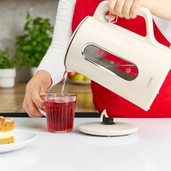 Elegantno i funkcionalno električno kuhalo za vodu MPM Mcz-126/B1 savršen je izbor za one koji cijene prirodni okus svojih napitaka i moderna kuhinjska rješenja. Savršeno je za minimalističke kuhinje i domove koji cijene praktične i tihe uređaje. Prednosti: – Dvostruka stijenka – dulje ostaje topla: dizajn vrča s dvostrukom stijenkom dulje održava temperaturu vode i prigušuje buku tijekom vrenja. – Staklena unutrašnjost za prirodan okus: unutarnji vrč izrađen od stakla otpornog na toplinu osigurava da napitci ne upijaju strane arome. – Osvijetljena unutrašnjost – stil i funkcija: kada voda vrije, unutrašnjost kuhala svijetli plavo, dajući kuhinji modernu atmosferu. – Sigurno plastično kućište: vanjski sloj kuhala ostaje hladan, smanjujući rizik od opeklina. – Dvostrani indikator razine vode: olakšava provjeru razine vode i za dešnjake i za ljevake. – Okretna baza od 360°: stabilnost i udobnost korištenja bez obzira na orijentaciju vrča. – Strix prekidač – sigurnost na prvom mjestu: visokokvalitetni automatski mehanizam za isključivanje osigurava trajnost i pouzdanost. – Kapacitet od 0,5 do 1,5 litara: fleksibilnost u pripremi i jedne šalice i punog vrča. Dizajn kuhala za vodu MPM Mcz-126/B1 – moderan oblik i pozadinsko osvjetljenje. Električno kuhalo za vodu MPM Mcz-126/B1 ima suptilno bijelo kućište i elegantno LED pozadinsko osvjetljenje koje se aktivira kada voda prokuha. Ovaj funkcionalni detalj poboljšava vidljivost unutrašnjosti, ali služi i estetskoj svrsi. Model je dostupan u četiri boje – bijeloj, crnoj, pistacija i bež – što mu omogućuje da se uklopi u različite stilove kuhinje. Dvostruka stijenka staklenog vrča – poboljšani okus i udobnost korištenja. Unutrašnjost kuhala za vodu izrađena je od kaljenog stakla koje ne reagira s vodom i ne mijenja njegov okus – posebno važno za one koji kuhaju začinsko bilje ili visokokvalitetne čajeve. Dvostruka stijenka ne samo da pruža bolju toplinsku izolaciju, već i prigušuje zvuk kipuće vode i štiti od opeklina. Funkcionalne značajke kuhala za vodu Mcz-126/B1 – praktičnost u svakodnevnoj upotrebi. Kuhalo za vodu nudi praktične značajke koje pojednostavljuju svakodnevnu upotrebu: dvostrani indikator razine vode, praktičan poklopac za jednostavno punjenje i okretnu bazu. Pokriveni grijač olakšava čišćenje i smanjuje nakupljanje kamenca. Snaga od 1500 W omogućuje vam brzo kuhanje do 1,5 litara vode. Sigurnost i izdržljivost – električno kuhalo za vodu sa Strix prekidačem. Opremljeno poznatim Strix prekidačem, kuhalo za vodu MPM Mcz-126/B1 nudi sigurnu upotrebu i dugi vijek trajanja. Automatsko isključivanje nakon vrenja ili kada je kuhalo prazno je standardno, štiteći uređaj i korisnika. To je posebno važno kada se kuhalo često koristi tijekom dana. Tehničke specifikacije: