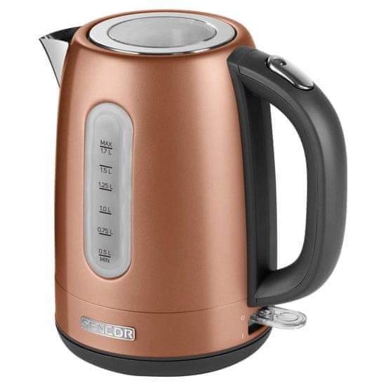 Električno kuhalo Sencor SWK 1776GD kapaciteta 1,7 l izrađeno od visokokvalitetnog nehrđajućeg čelika u zlatnoj boji. Filter koji se može ukloniti zadržava prljavštinu i talog. Automatsko isključivanje na točki vrenja i zaštita od pregrijavanja kada se uključi bez vode eliminiraju opasnost od požara. Snaga 2150 W