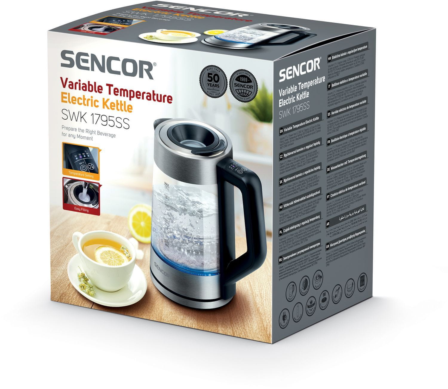 Kuhalo za vodu ulazne snage 2200 W volumena 1,7 litre. SENCOR SWK 1795SS opremljen je regulatorom temperature s promjenjivim podešavanjem i LED osvjetljenjem za prikaz temperature vode. Trostruki sigurnosni sustav pruža zaštitu od pregrijavanja i automatsko isključivanje.