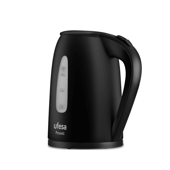 Izuzetno snažan kuhalo vode Ufesa Powell, 2200 W, zapremine 1,7 L. Ima pokazivač razine vode s obje strane i tri sigurnosna sustava. Idealno za brzo kuhanje veće količine vode.