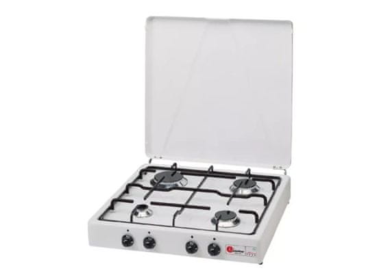 Plinski štednjak s četiri plamenika i poklopcem opremljen je sigurnosnim ventilom. Plamenici su izrađeni od legure Pyral N2, s emajliranim razdjelnicima plamena i emajliranom rešetkom.