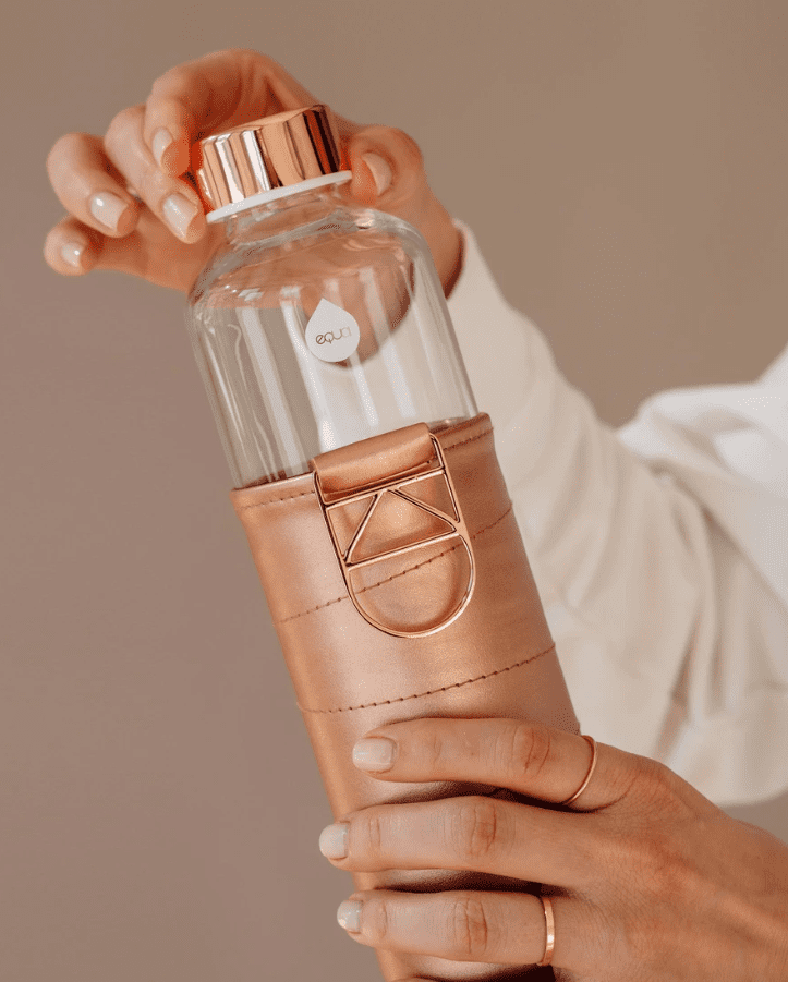 Koristite visokokvalitetnu, simpatičnu i praktičnu staklenu bočicu od 750 ml Equa s inovativnim navlakom od umjetne kože kako biste osigurali svoje zdravlje i dovoljnu hidrataciju, a istovremeno smanjili upotrebu plastike.